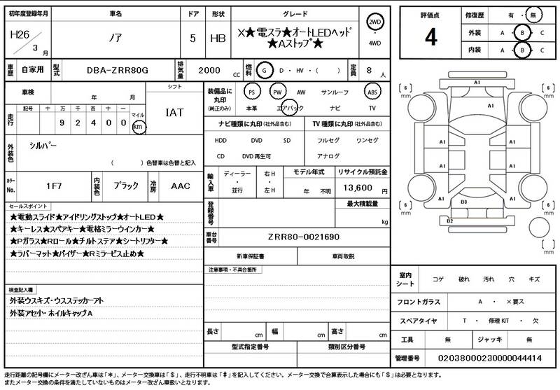 Model Code: ZRR80G Registration Year: 2014