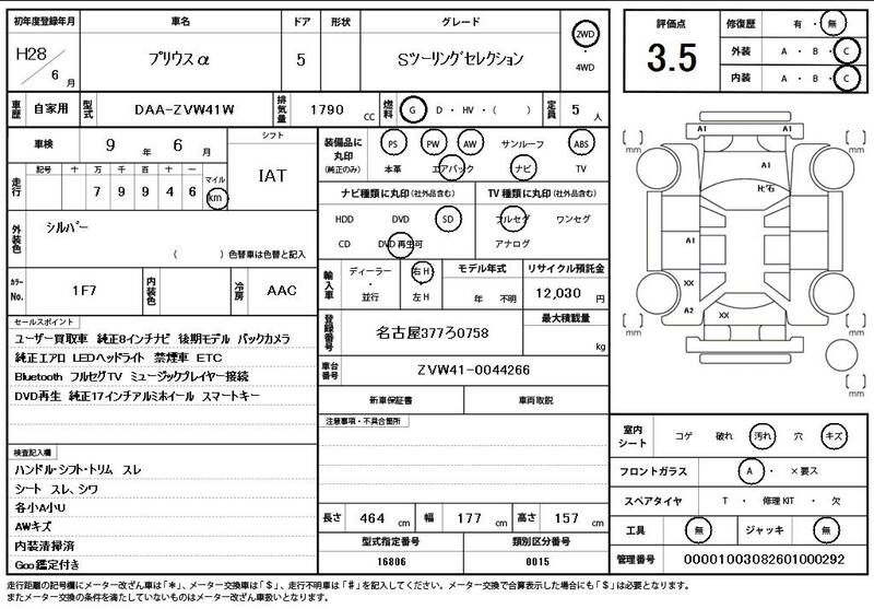 ZVW41W 80000km 2016 SILVER