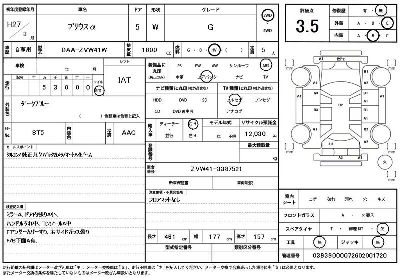 ZVW41W 53,000 km 2015 DARK BLUE