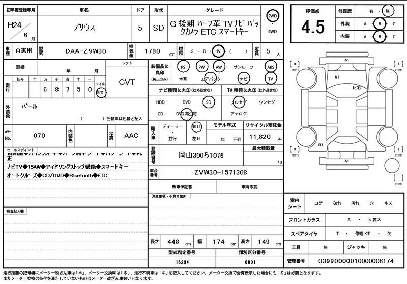 ZVW30 69000km 2012 PEARL
