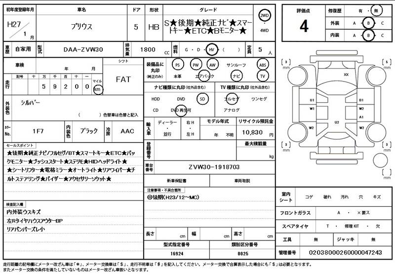 ZVW30 60000km 2015 SILVER