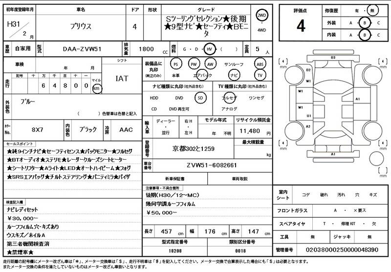 ZVW51 65000km 2019 BLUE