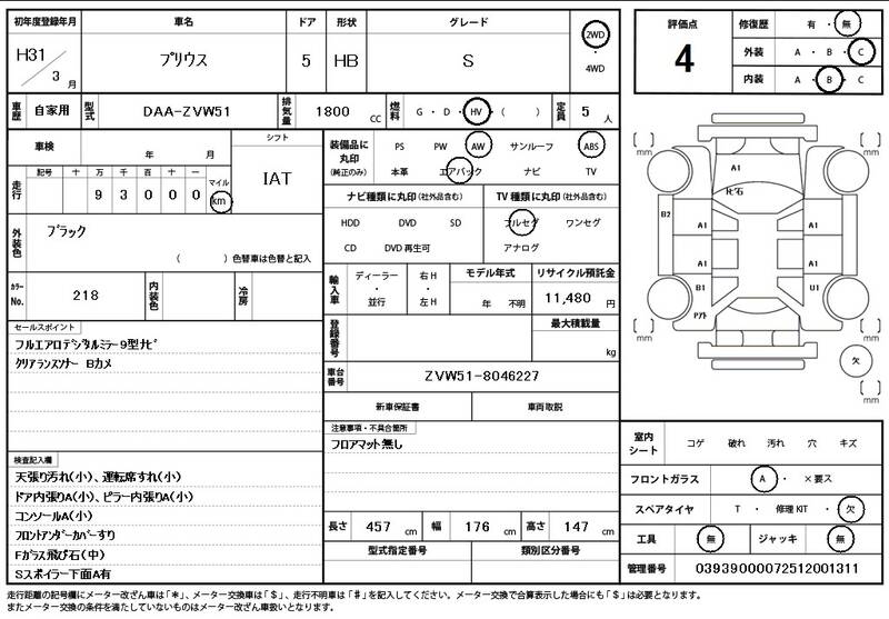 ZVW51 93000km 2019 BLACK