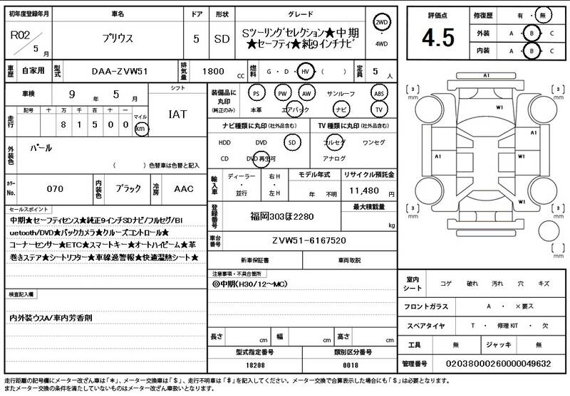 ZVW51 82000km 2020 PEARL