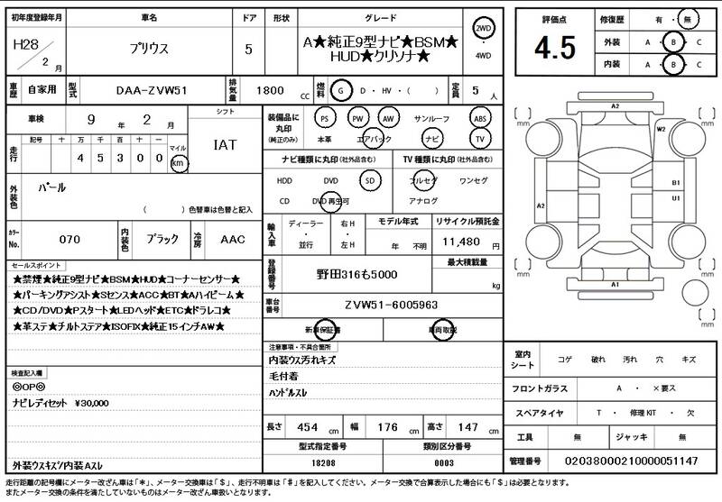 ZVW51 46000km 2016 PEARL