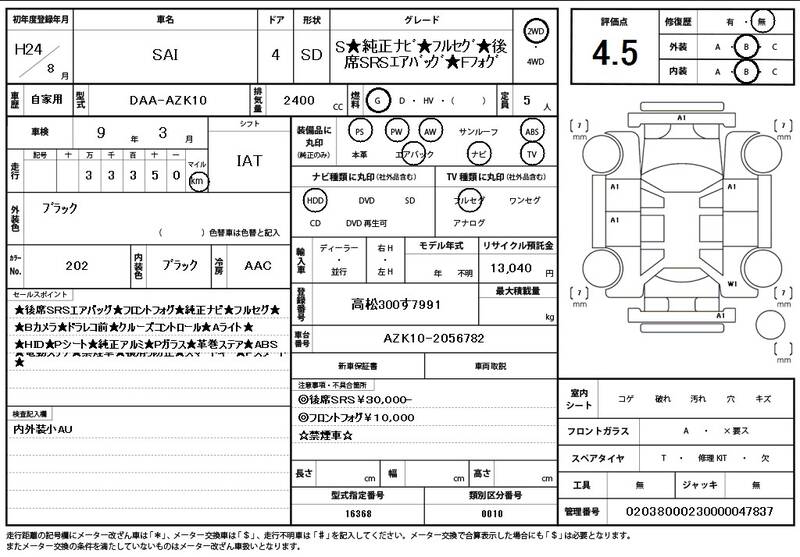 AZK10 34,000 km 2012 BLACK