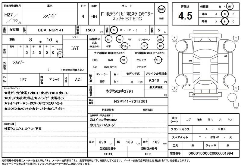 NSP141 53,000 km 2015 SILVER