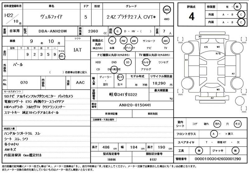 ANH20W 93,000 km 2010 PEARL