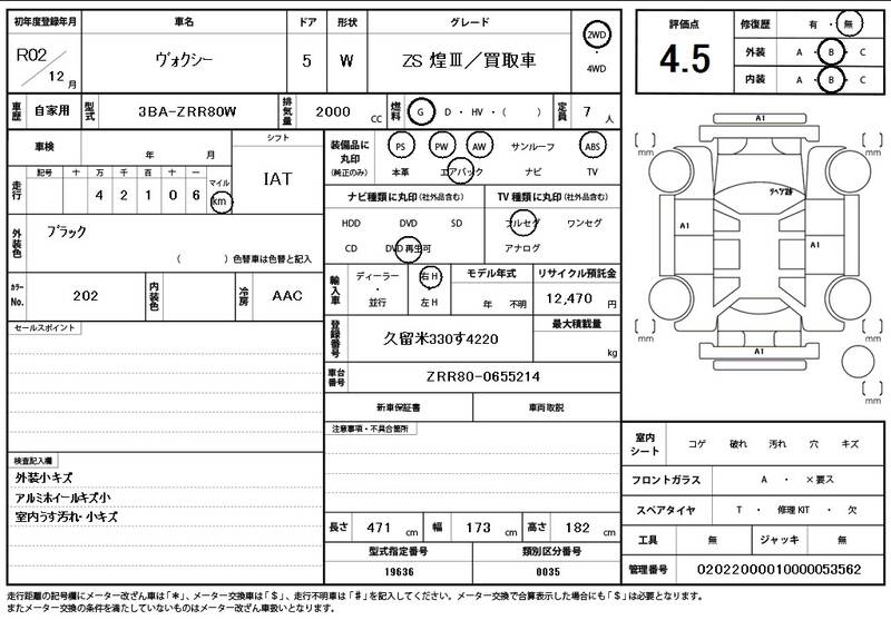 ZRR80W 43000km 2020 BLACK
