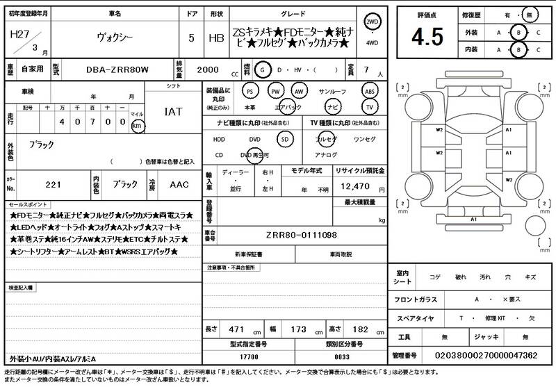 ZRR80W 41000km 2015 BLACK