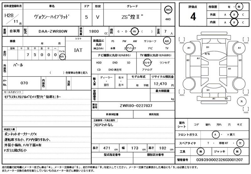 ZWR80W 75000km 2016 PEARL