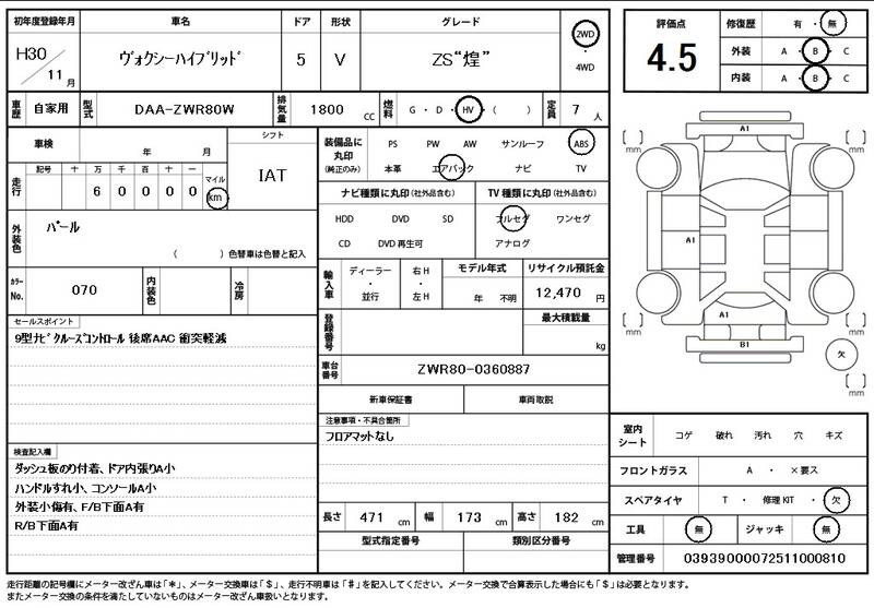 ZWR80W 60000km 2018 PEARL